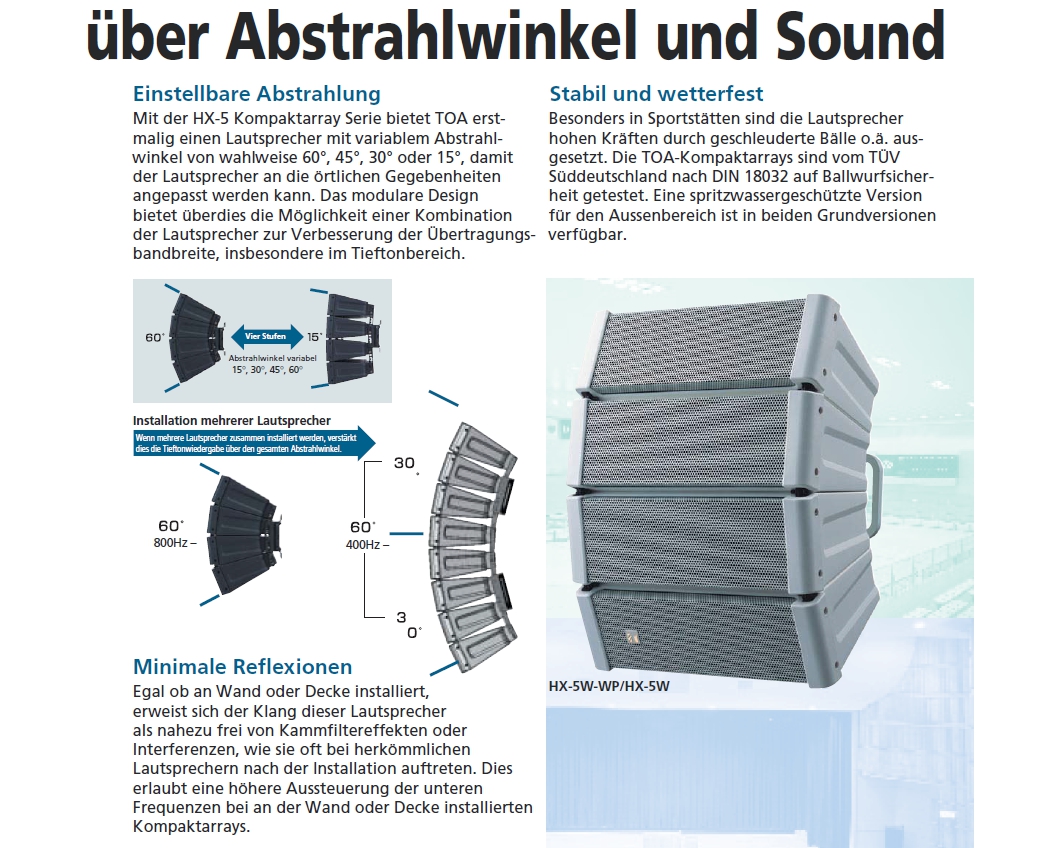 - Gegen Aufpreis auch als 100V ELA Anlage erhältlich für Kabelstrecken bis 700m.