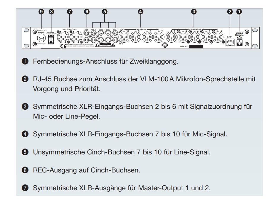 Eingänge: 7-10 Symmetrische XLR-Eingangs-Buchsen für Mic-Signal