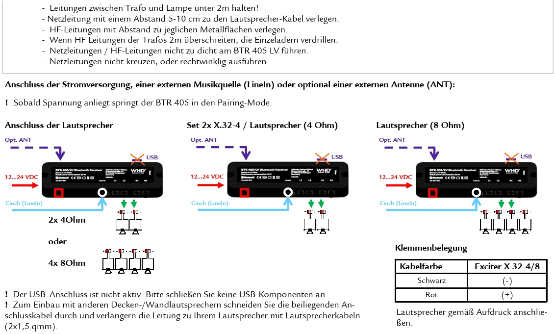 Lieferung: BTR405LV ohne Netzteil und 2x 2m Lautsprecherkabel mit Steckverbindern