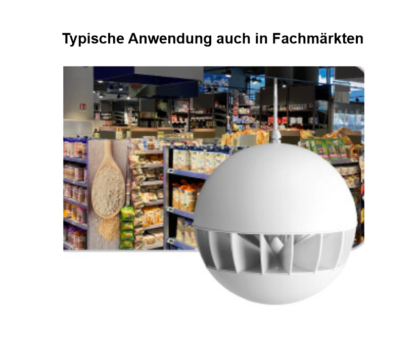 Dieser moderne Kugellautsprecher eignet sich speziell für den Einsatz in Räumen mit hohen Decken. Durch den hohen 360-Grad Öffnungswinkel ermöglicht er eine gleichmäßige Beschallung der Hörfläche. Die ausgezeichnete Verteilung des Schalls in Verbindung mit einem ausgeglichenen Frequenzgang kann viele Probleme lösen, die in hohen Räumen mit erschwerten akustischen Rahmenbedingungen entstehen. Der ideale Einsatzbereich dieses Lautsprechers ist in großvolumigen Räumen mit hoher Decke wie z.B. Supermärkten, Kaufhäusern, Warte-, bzw. Aufenthaltshallen von z.B. Flughäfen, Fabriken etc. Dieses Produkt zeichnet sich durch seine sehr gute Sprachverständlichkeit und Wiedergabe von Hintergrundmusik aus.