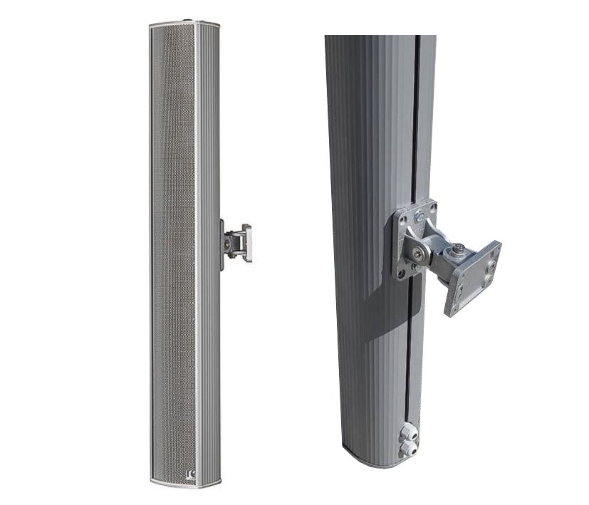 Tonsäule 58cm 60W ELA 100V ALU-Ausführung Outdoor-Indoor tauglich Diese Lautsprechersäulen-Serie ist sehr solide und stabil aus stranggepresstem Aluminium aufgebaut.Aluminium-LautsprechersäuleBallwurfsicher und für den Außeneinsatz oder Inneneinsatz Die beiden Deckel sind aus Alu-Guss, das Lochblech ist aus einbrennlackiertem Aluminium Die Säulen sind wetter- und staubfest konstruiert und auch für denEinsatz im Freien bestens geeignet, z. B. in Freilichtbühnen, Stadien, Parks etc. Diese Lautsprechersäulen sind mit 100V-ELA-Übertrager ausgerüstetdie jeweils auf 100% oder 50% Leistung angepasst werden können Keulenförmige Abstrahlcharakteristik mit hoher Richtwirkung Der Gehäuse-Querschnitt ist trapezformig, dadurch kann man diese Lautsprechersäulen sehr gut und platzsparend auch in Mauerecken etc. montierenInnengewinde M10 oben und unten für Wandbetrieb oder auch StativbetriebBei jeder dieser Lautsprechersäulen ist im Lieferumfang einkpl. Satz Montageteile enthalten, der auch Schwenken und Neigen ermöglichtTechnische Daten:Musikleistung: 60W / Sinus: 40WAnpassungen Sinus: 40-20W ( 100% / 50% ) Frequenzbereich 60....15.000HzSchalldruck bei Nennleistung 116dBSchalldruck bei 1w-1m 108dBLautsprecher, eingebaut: 4x Breitbänder je 139mm Kabelfarben und Anschluss ( siehe auch Aufkleber auf der Säule ) : Schwarz = Com ( gemeinsame Minus ) Braune Adern = ( + ) geringe Leistung 20W rms 100V ELA Eingang Blaue Adern = ( + ) hohe Leistung 40W rms 100V ELA EingangGehäuse ALU ( Details siehe auch weitere Bilder ) Außenmaße (H x B x T) 575 x 147 x 110mmGewicht ca. 5,5 kgFarbe: Silbermet./SchwarzEin kompletter Montagesatz ist im Lieferumfang enthalten