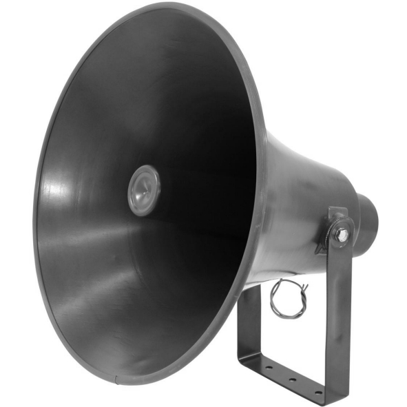 Altbewährtes Modell in Kunststofftrichterausführung, wetterfeste Ausführung. Aus UV-beständigen, verstärkten ABS-Kunststoff hergestellt, mit Epoxid überzogenen. U-Befestigungsbügel aus Edelstahl (rostfrei). Diese Druckkammerlautsprecher sind für eine hohe Tonverstärkung konzipiert worden und somit einen hohen Schalldruck. Sie sind resistent gegenüber salzhaltiger Luft und den meisten nicht ätzenden Stoffen. Sie eignen sich hervorragend für den Gebrauch im Innen- und Außenbereich. Aufgrund der Beständigkeit gegenüber den meisten Chemikalien können diese Lautsprecher auch z.B. in Marine- oder industriellen Anwendungen eingesetzt werden. Diseses Modell ist resistent gegenüber salzhaltiger Luft und den meisten nicht ätzenden Stoffen. Sie eignen sich hervorragend für den Gebrauch im Innen-, und Außenbereich. Aufgrund der Beständigkeit gegenüber den meisten Chemikalien können diese Lautsprecher auch z.B. in Marine- oder industriellen Anwendungen eingesetzt werden. Dieser Lautsprecher werden standardmäßig mit je zwei Stück M25 Kabelverschraubungen geliefert. Die erlaubt ein Durchschleifen zum nächsten Lautsprecher ohne einen zusätzlichen Anschlusskasten. Der Lautsprecher ist sehr gut für den Aufbau von Anlagen geeignet die den Anforderungen der DIN EN60849 (Norm 0828) entsprechen. Gemäß British Standard 5839 Teil 8, enthält er einen keramischen Anschluß sowie eine thermische Sicherung. Technische Daten: Belastbarkeit 20Watt (rms) max. 40 Watt Musikleistung Frequenzbereich: 250....8000 Hz Integr. 100V ELA Trafo mit Leistungsanpassung: 20W / 10W / 5W / 2.5 Watt rms Impedanz bei Leistung: 500R / 1k / 2k / 4k-Ohm / Treiber Impedanz: 20-Ohm Empfindlichkeit: 101dB 1w-1m und 114dB bei voller Leistung. Abstrahlwinkel: 130° bei 1000Hz und 170° bei 2000Hz Schutzgrad IP64 wenn Neigung von min 10grad nach unten monrtiert wird. Abmessungen: Frontdurchmesser 201mm / Baulänge: 254mmKabellänge 4.7 m Farbe: Lichtgrau RAL7035 Gewicht: 1,7kg